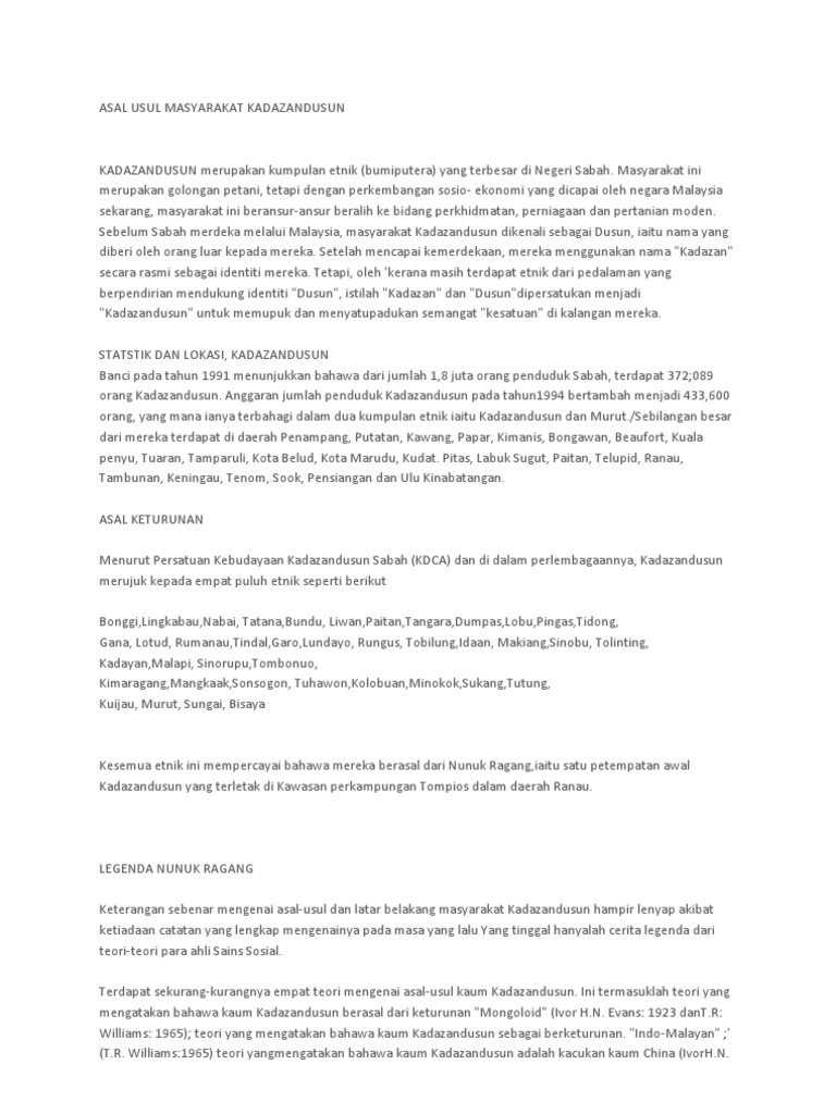 Asal Usul Masyarakat Kadazandusun Pdf